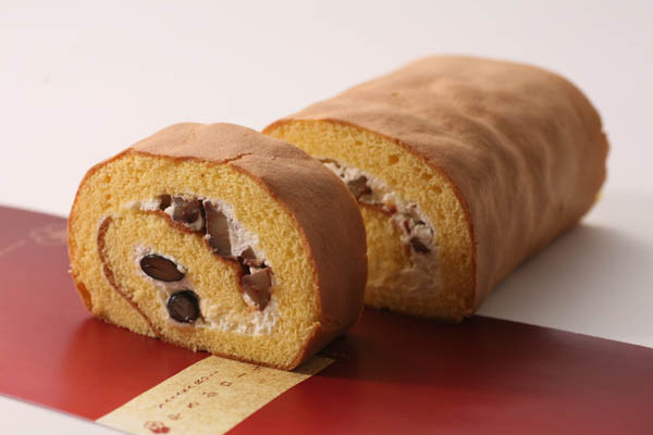 ふわふわスポンジ生地に中身は、栗と北海道産黒豆を、生クリームとカスタードクリームで包みました。